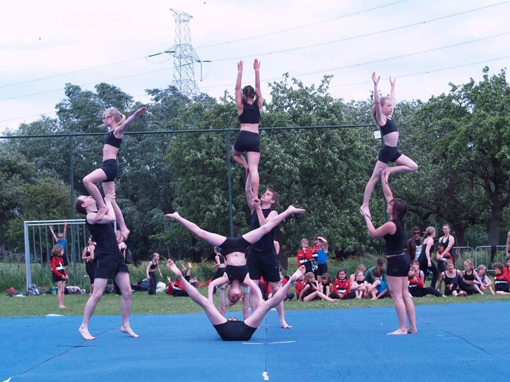 Wel worden de jongens en meisjes ingedeeld volgens de turndisciplines zoals bij toestelturnen.